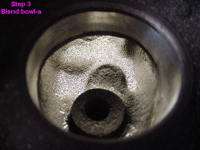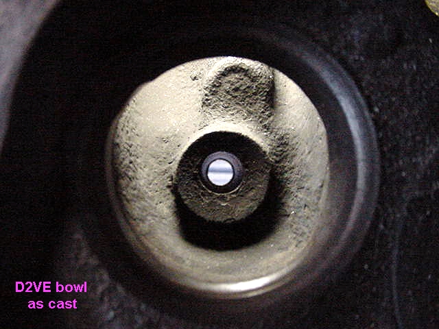 | There are minor porting differences between the early D0VE-C castings and prior vs. the D3VE-AA castings. The differences lie primarily with the height of the short turn crest and the distance from valve seat to the beginning of the short turn roll. These differences are subtle and will be noted when necessary. When all is said and done they all flow about the same after porting. This style of port is known as the open passage because all bumps are removed. Later research has shown that removal of the thermactor roof bump and the exhaust bolt hole bump is not necessary. See the stock exit information link for further information on why and how. |
