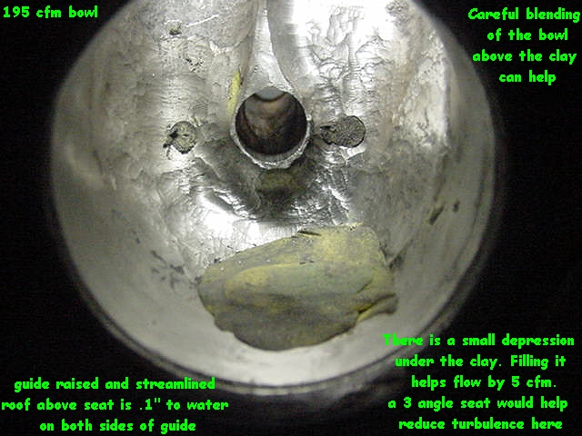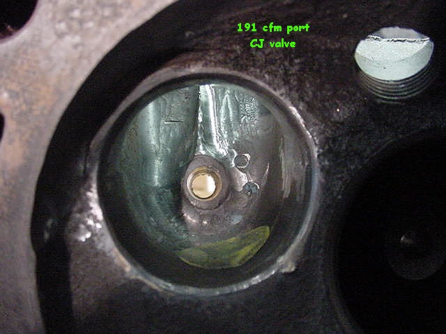 | The addition of a CJ valve and the bowl and short turn mods to accomodate it netted the second higher set of flow figures above. A good 3 angle seat should exceed 210 cfm. This with a STOCK sized exit. No sealing and flange fit issues + 1/3 less work. No floor filling necessary. |